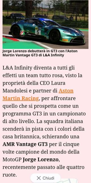 Aston Martin Vantage Coupe GT3 (ex Jorge Lorenzo) IVA DEDUCIBILE
