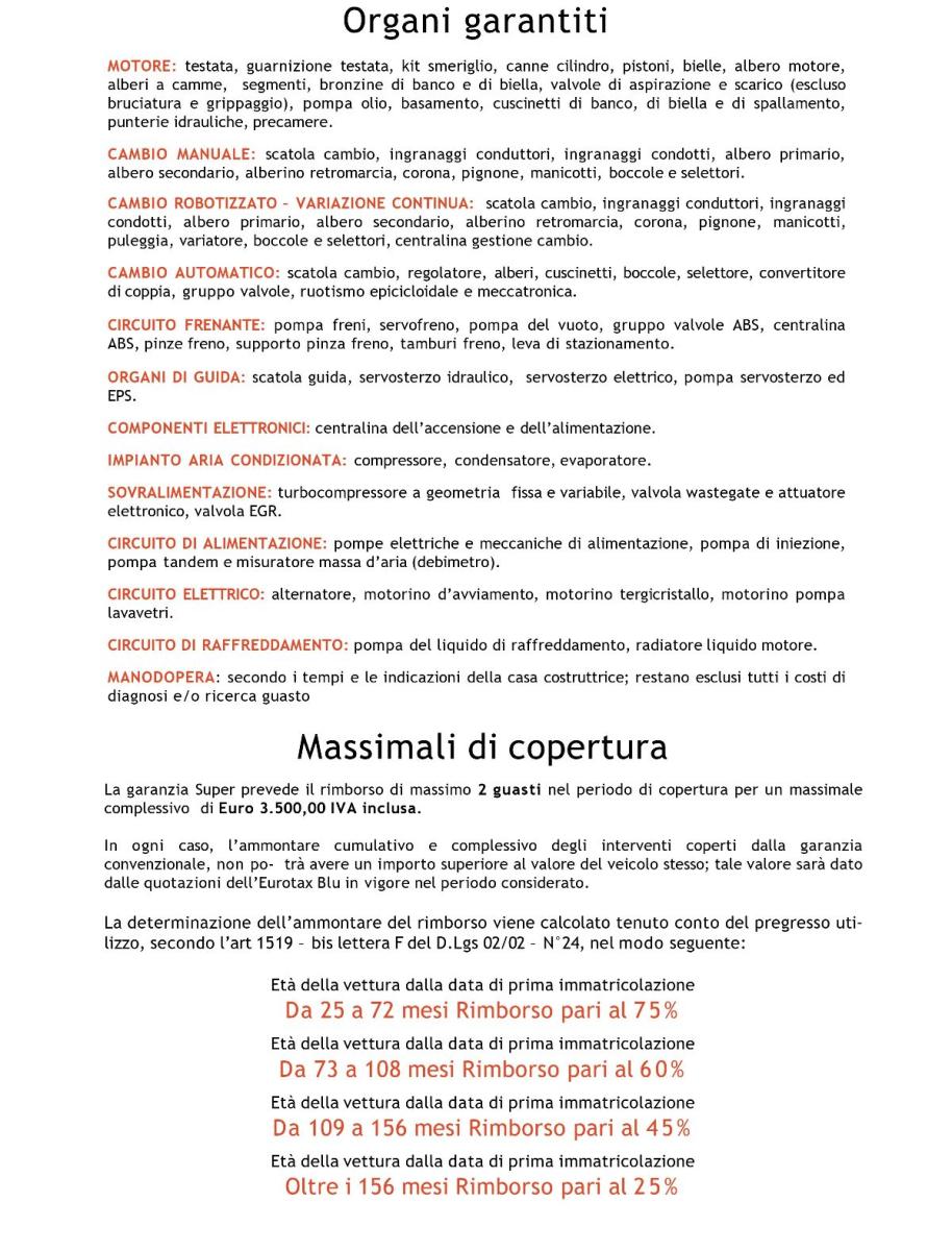 -12 MESI DI GARANZIA MOOVE "SUPER" INCLUSA NEL PREZZO (VEDI FOTO IN ALLEGATO PER CONDIZIONI E ORGANI COPERTI)